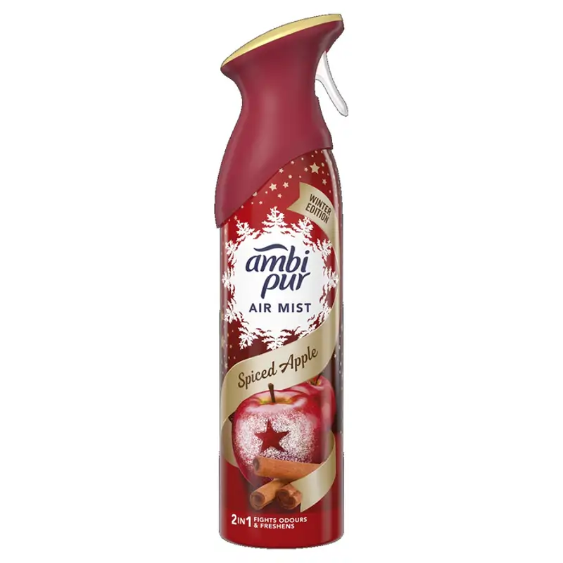 Az Ambi Pur légfrissítő Odourclear technológiája megszünteti a kellemetlen szagokat, és könnyed, friss illatot hagy maga után. Friss almás és bodzás fejjegy a hagyományos téli fűszerek (fahéj, szerecsendió és szegfűszeg) és a vanília leheletnyi aromájával. Ambi Pur Az aeroszolos légfrissítők nem gyúlékonyak, és természetes hajtógázzal működnek. így minden helyiségben bátran használhatók. Próbálja ki az Odourclear technológiával működő Ambi Pur termékek széles választékát, például az Ambi Pur szövetfrissítőt és az autóillatosítókat. Tegye próbára a 3Volution elektromos illatpárologtató készülékeket is, amelyek akár 90 napon át képesek felvenni a küzdelmet a szagokkal, és friss illattal töltik meg a helyiségeket.